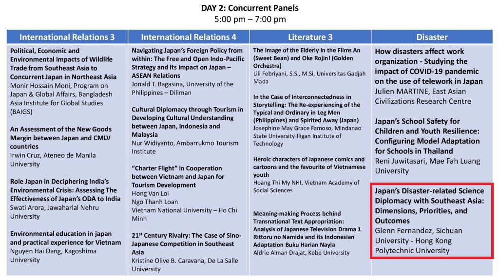 Presentation: “Japan’s Disaster-related Science Diplomacy with Southeast Asia: Dimensions, Priorities, and Outcomes”
