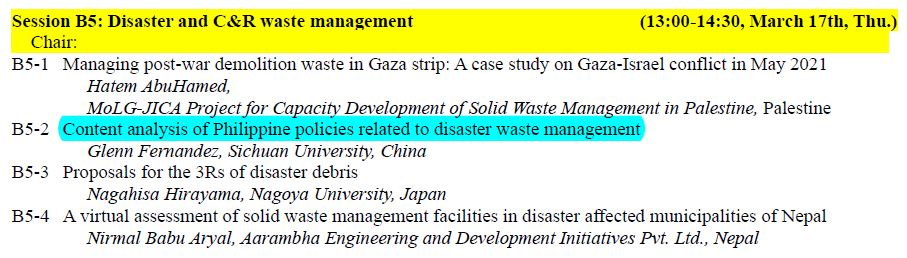 Presentation: “Content Analysis of Philippine Policies Related to Disaster Waste Management“